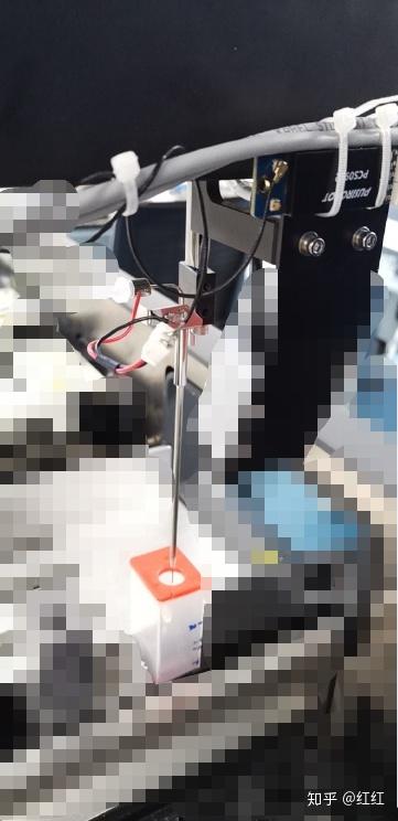 管路中灌注清洗液,接上双层屏蔽探针,并在探针管路与后端液路之间加电磁阀控制液路通断,探针与电磁阀安装如下图: