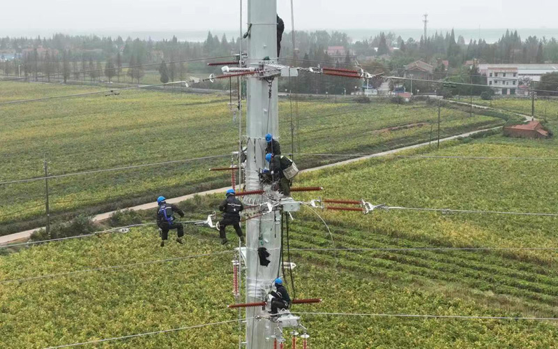 工程沿线跨越马影河及多处塘湖,穿越2个通车入口,跨越6条电力及电信塔线,与110千伏线路搭接处需拆除原铁塔,新立双回路电缆终端钢管塔。为解决工程跨河、跨路、跨线等复杂的作业环境问题,既济电力采用无人机架线的方式,远距离牵引拉线,完成线路架设,提高了作业效率。同时为了保施工安全,减少项目施工造成的停电时长及停电范围,既济电力对项目进度进一步梳理,对停电转供方案进行充分讨论,细化架空线路施工关键节点施工方案,确保项目在最小的停电影响范围内能顺利、安全实施。