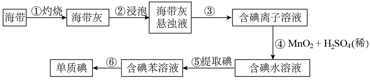 (5)I2在水中溶解度不大而易溶于苯中,苯与水互不相溶,且I2不能与苯反应,因此从碘水中分离出碘的操作为萃取,使用的萃取剂除苯外,还可以使用四氯化碳、直馏汽油,但由于乙醇与水混溶不分层,因此不能作萃取剂;乙酸易溶于水,也不能作萃取剂,故合理选项是bd;