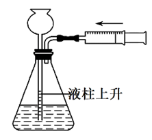 将注射器向里推进,长颈漏斗形成一段水柱,则气密性良好,故B不符合题意;
