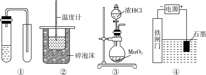 3.D【解析】A项,铜与稀硝酸反应生成NO,但NO极易被空气中的氧气氧化,故不能用排空气法收集,错误;B项,该装置中缺少环形玻璃搅拌棒,错误;C项,用浓盐酸和MnO2制氯气,需要加热,错误;D项,铁闸门连接外加直流电源的负极,做阴极,通电后,电子被强制流向铁闸门,使钢铁表面腐蚀电流降至零或接近于零,从而起到保护作用,正确。