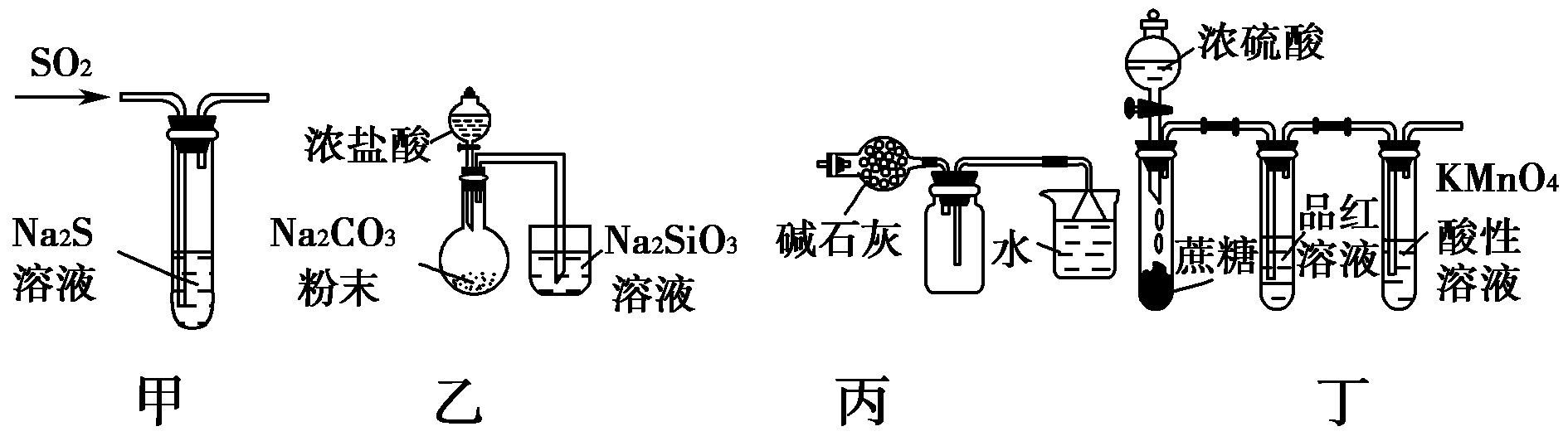 A.利用甲装置验证SO2或H2SO3具有氧化性
