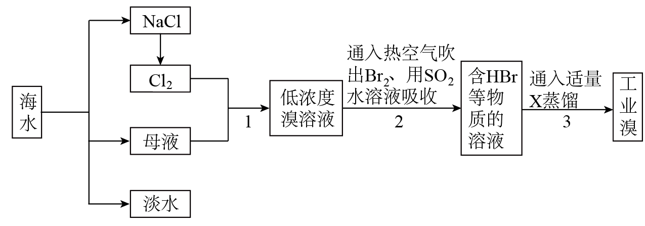 (3)向含有HBr的溶液中通入氧化性的物质如Cl2,可以将Br-氧化为Br2,发生反应的化学方程式为:2HBr+Cl2=2HCl+Br2;