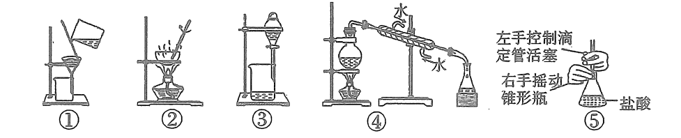 D.图⑤中的滴定管为酸式滴定管,不能用其盛放