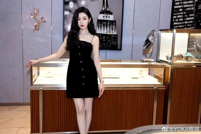 照片中一身黑色性感裙子又撩又飒,长卷发衬托得她的脸充满风情,