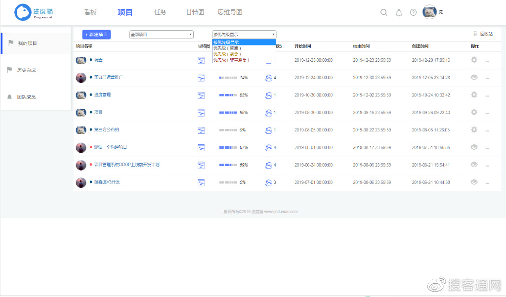 确定好项目优先级,管理者就可以在进度猫中进行设置,如下图所示: