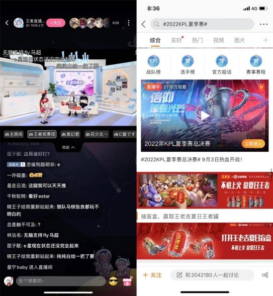 在一系列沉浸式“游戏+佐餐”场景搭建过后,王老吉的佐餐搭档形象开始迅速拔高,而为进一步抢占更多元化的年轻用户圈层。据微博#2022KPL夏季赛#话题数据显示,其阅读量达到56.3亿,讨论量达227.5万。由2022KPL夏季赛触发的好感度和消费欲望,在日后的生活场景中也能形成长尾的效应。