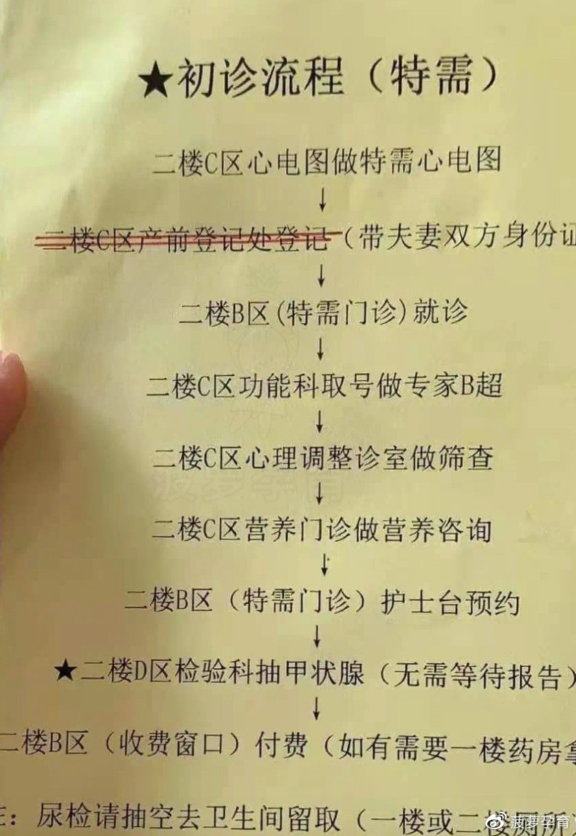 1、挂妇科早孕号,空腹抽血,做B超检查和尿检,到1楼便民服务中心预约早筛门诊以及B超。