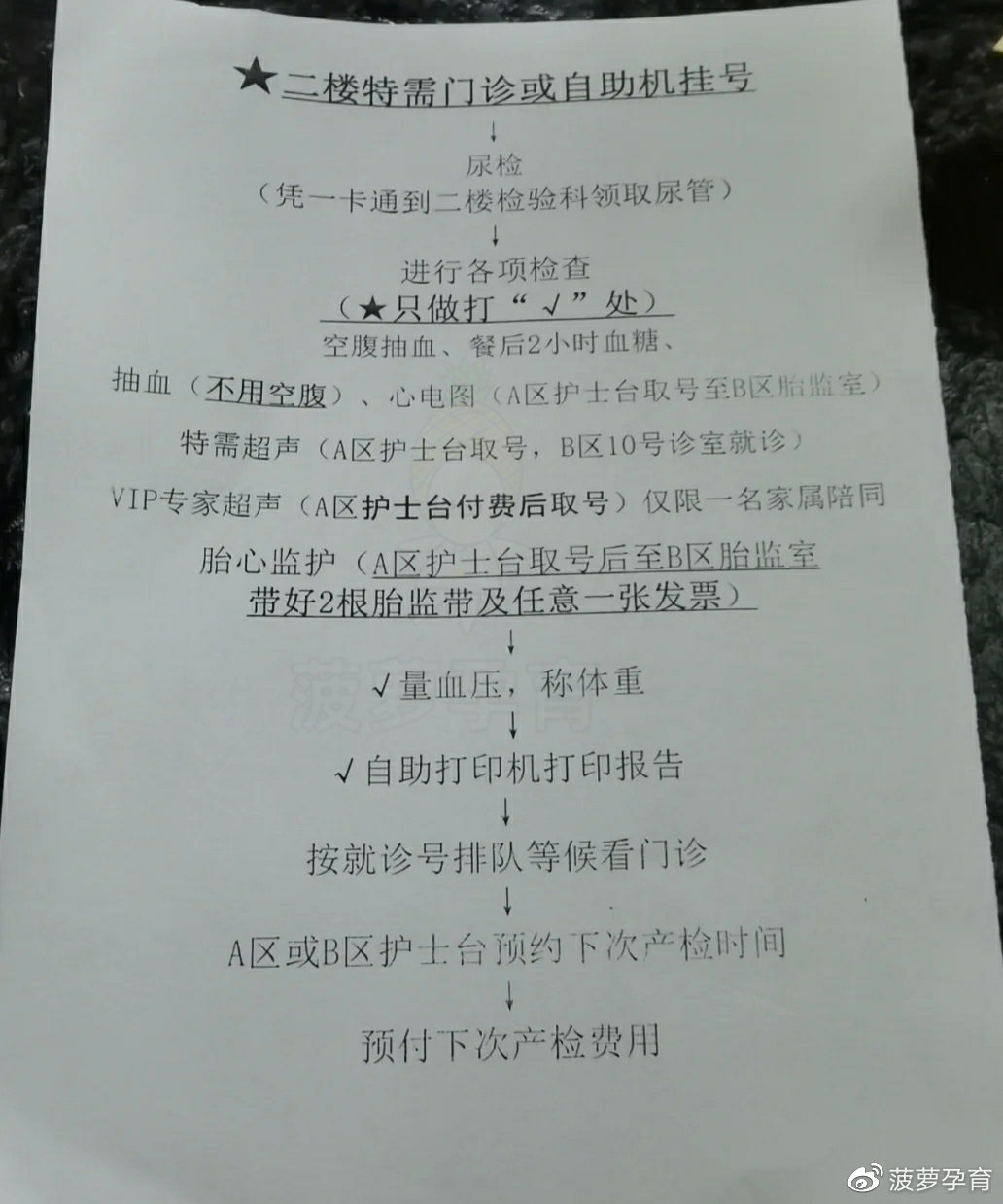 4、做NT B超、尿检、心电图等检查,然后到营养门诊填写孕妇资料。
