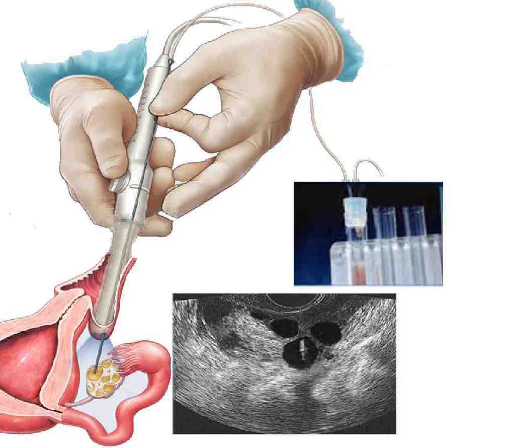 医生经阴道超声引导下穿刺卵巢内的卵泡