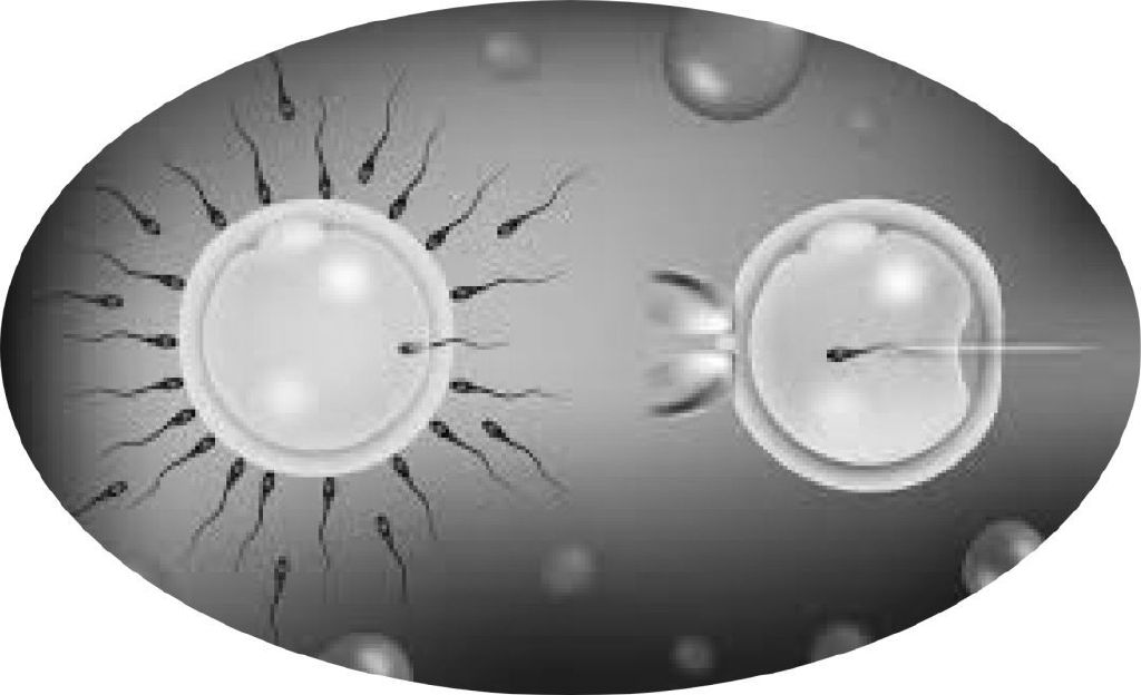 图为常规IVF,即一代试管,在卵子周围放入一定数量的精子,其中一匹精子会自动钻入卵子的透明带内。