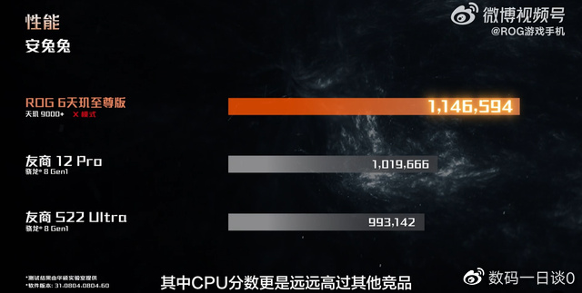 虽然游戏手机和旗舰手机用着同样的旗舰芯片,但游戏手机的CPU和GPU频率调度更加积极。ROG游戏手机6 天玑版搭载联发科天玑9000+Soc,采用全新4nm台积电工艺打造,并且将天玑9000+默认的大核3.2GHz超频至3.35GHz,性能释放更激进。加上新一代LPDDR5x及UFS3.1组合,目前ROG游戏手机6 天玑版在安兔兔跑分排名第一,拥有高达114W+的实测成绩,超越一众骁龙8+旗舰机型。