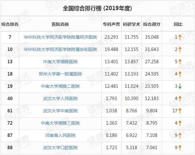 从这个排名中, 大家能够看出来这10家医院并不是三省平分,湖北一省就占了5个名额。而湖南则占了3个名额,剩下的河南自然就只有2个名额了。其中第一名和第二名都在湖北,可见湖北在华中地区的实力是很强的。