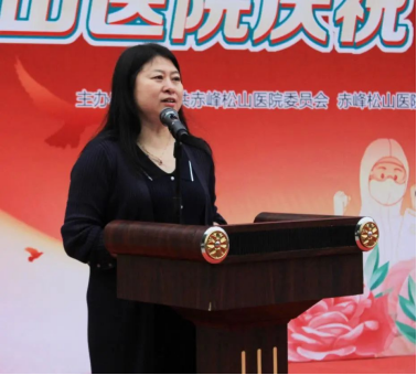 赤峰松山医院院长姚楠发表活动致辞。她代表医院领导班子向默默无闻、无私奉献、勇挑重担、长期坚守在救死扶伤一线的医师们,致以崇高的敬意和节日的问候。