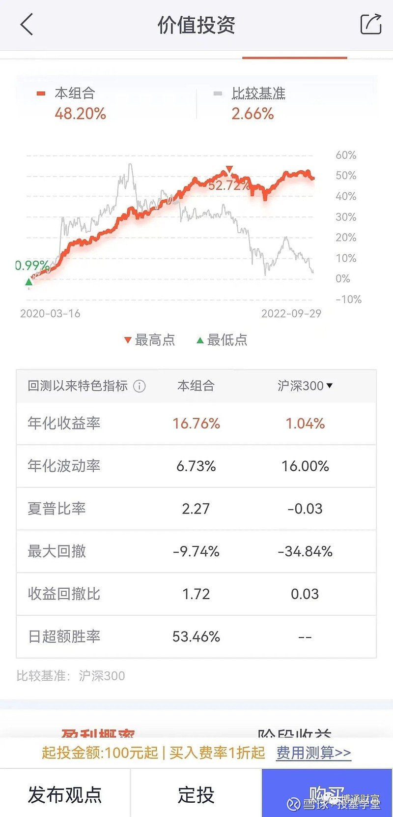下图的“价值投资”组合,是我构建的一个股债策略,2020年以来最大回撤仅为-9.74%,实现了48.2%的收益,相比现在很多投资者都处于浮亏,效果要好很多。