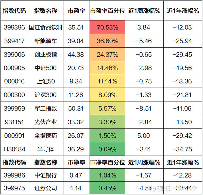 部分指数最新估值一览