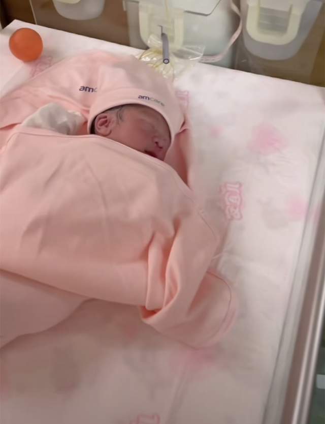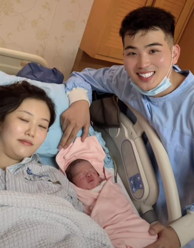 刚刚诞生的小家伙躺在妈妈的身边,看起来非常可爱,一家三口同框的画面,也是充满了温暖,不过这一刻的幸福真的来之不易。