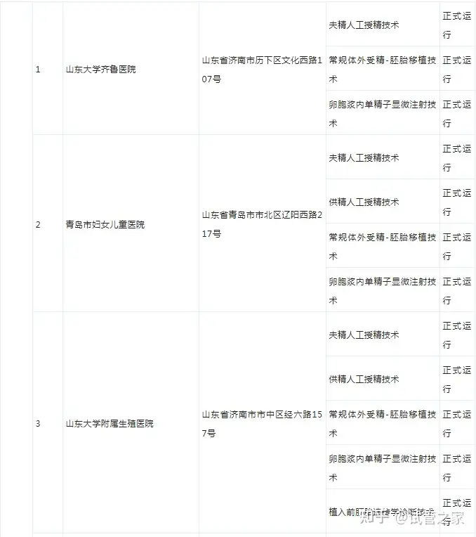 截止到2020年12月,山东省经批准开展人类辅助生殖技术的医疗机构有32家,山东生殖科最好的医院是山东大学附属生殖医院。 山东的医院可以开展夫精人工授精技术、供精人工授精技术、常规体外受精-胚胎移植技术(第一代试管婴儿技术)、卵胞浆内单精子显微注射技术(第二代试管婴儿技术),植入前胚胎遗传学诊断技术(第三代试管婴儿技术)。 山东能进行植入前胚胎遗传学诊断技术(第三代试管婴儿技术)的医院有1家,为山东大学附属生殖医院。能进行供精人工授精技术的医院也有6家,分别为青岛市妇女儿童医院、山东大学附属生殖医院、山东中医药大学附属医院、烟台毓璜顶医院、山东中医药大学第二附属医院和济宁医学院附属医院山东省人类辅助生殖技术医院排名: 1、山东大学附属生殖医院 2、山东大学齐鲁医院 3、青岛市妇女儿童医院 4、山东中医药大学附属医院 5、青岛大学附属医院 6、山东省妇幼保健院2022山东经批准开展人类人类辅助生殖技术的医疗机构: